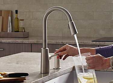 隨心控抽拉龍頭提供更大的洗滌范圍和自動回位功能。
